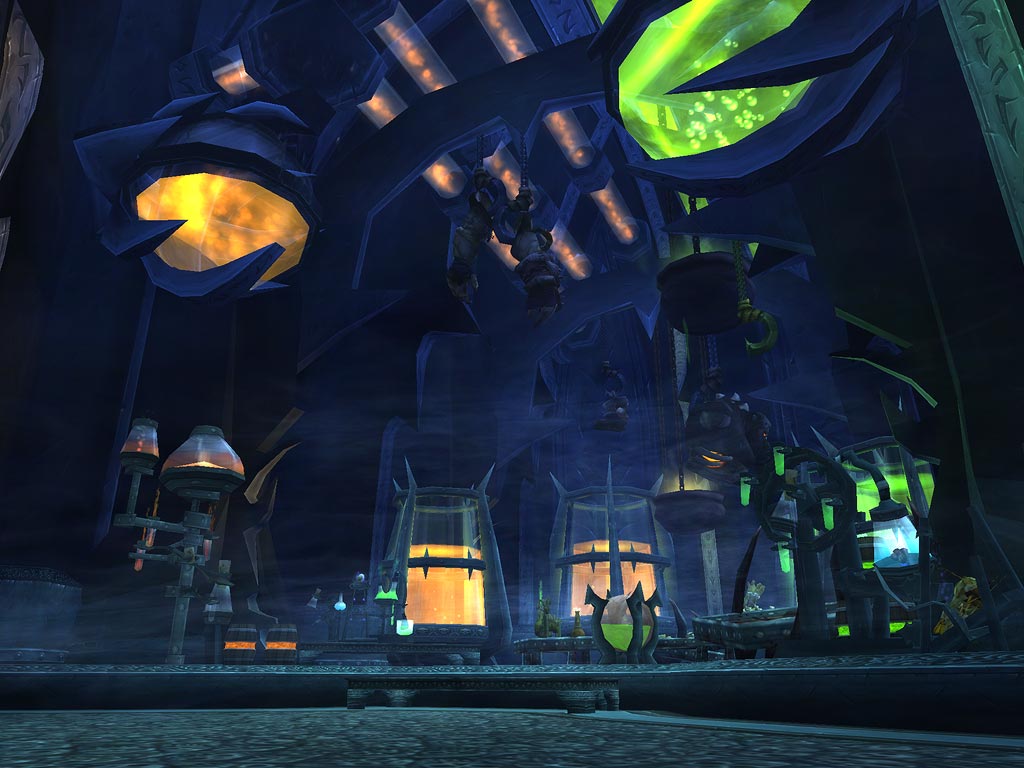 A central theme of the Plagueworks seems to be the green liquid plague seen in Warcraft III and classic World of Warcraft, alongside the orange