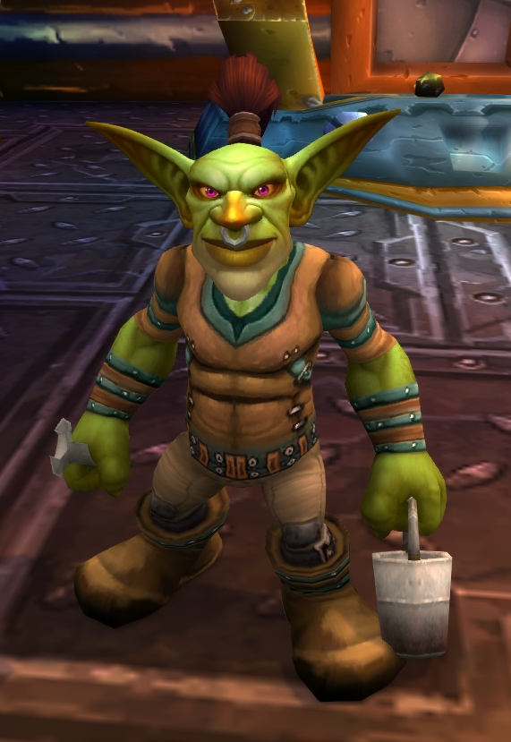 Pozzik is a goblin tinker and a co-owner of the Speedbarge floating on the Shimmering Deep of Thousand Needles. He owns a bomber.