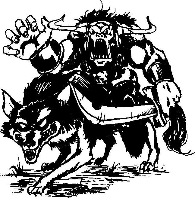Raiders are the most vicious of the Orcish hordes, these minions of Blackhand are trained to show no mercy. Riders of the darkwolves, these savage warriors use the speed and ferocity of their mounts to make them a deadly enemy. Faster than those who attack on foot, they have perfected the tactics of tearing through columns of enemy soldiers like a hot wind.[1]