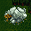A gold mine in Warcraft: Orcs and Humans with a rail track coming out of the entrance