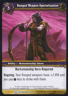 Marksmanship Hero Required Ongoing: Your Ranged weapons have +2 ATK and you pay 1 less to strike with them. |