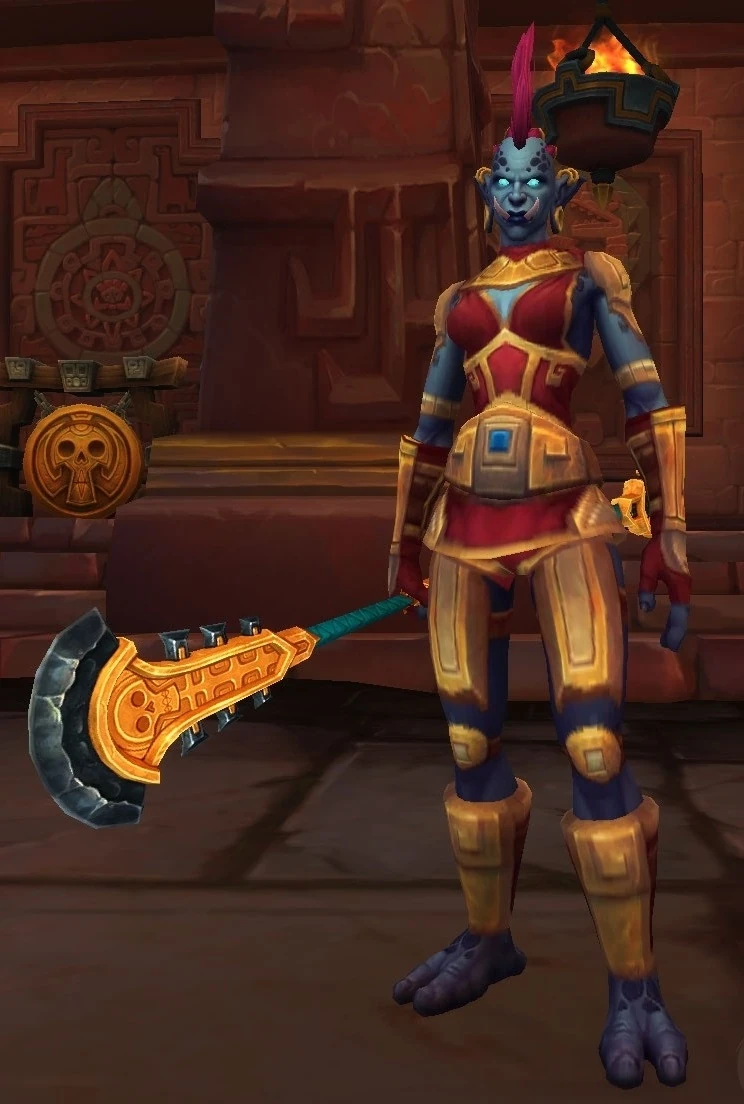 Rastari Enforcers are Zandalari troll guards found in Dazar'alor. The ones stationed at Zanchul were corrupted. Some of them are off-duty. They also appear inside of Uldir.