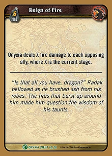 | Rules | Onyxia deals X fire damage to each opposing ally, where X is the current stage. |