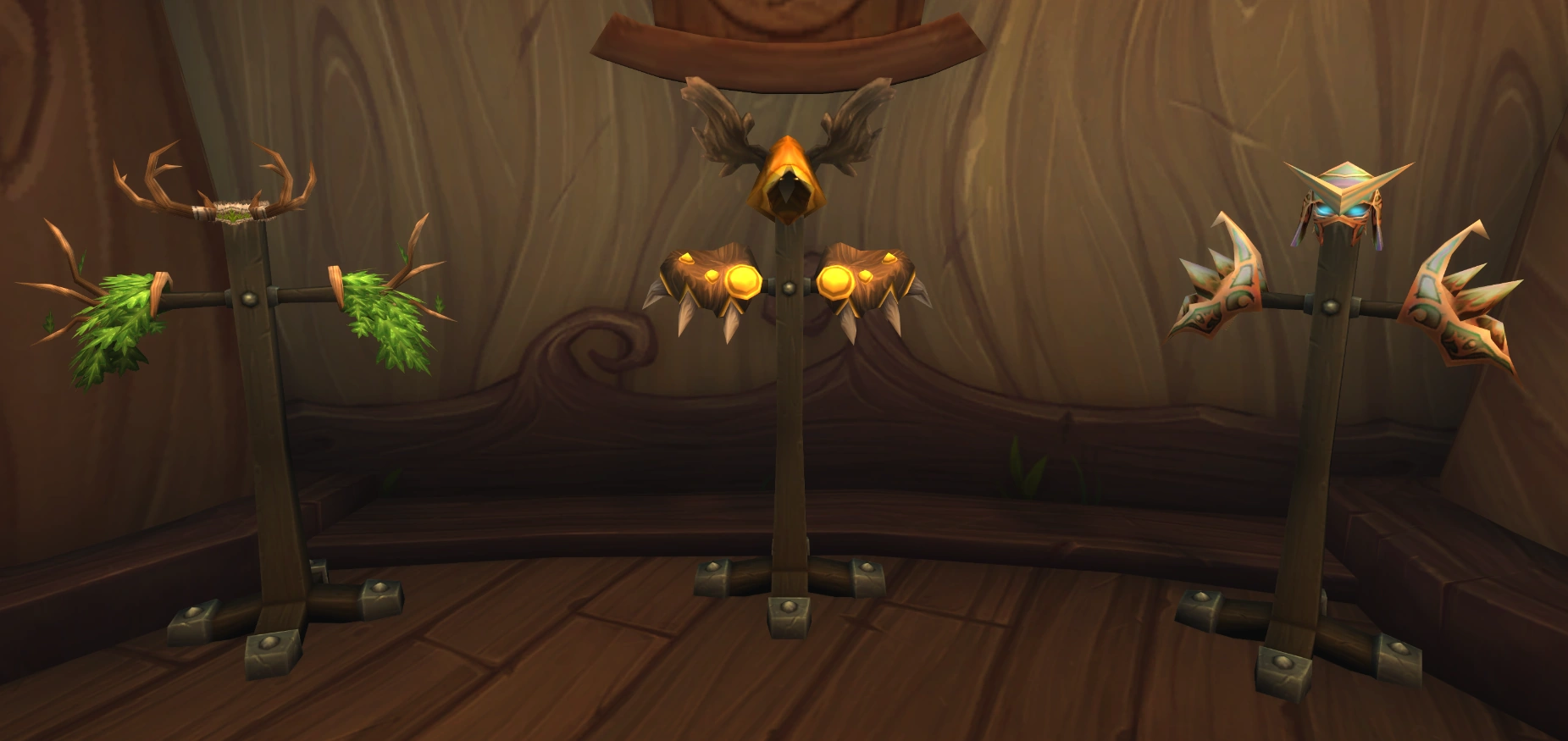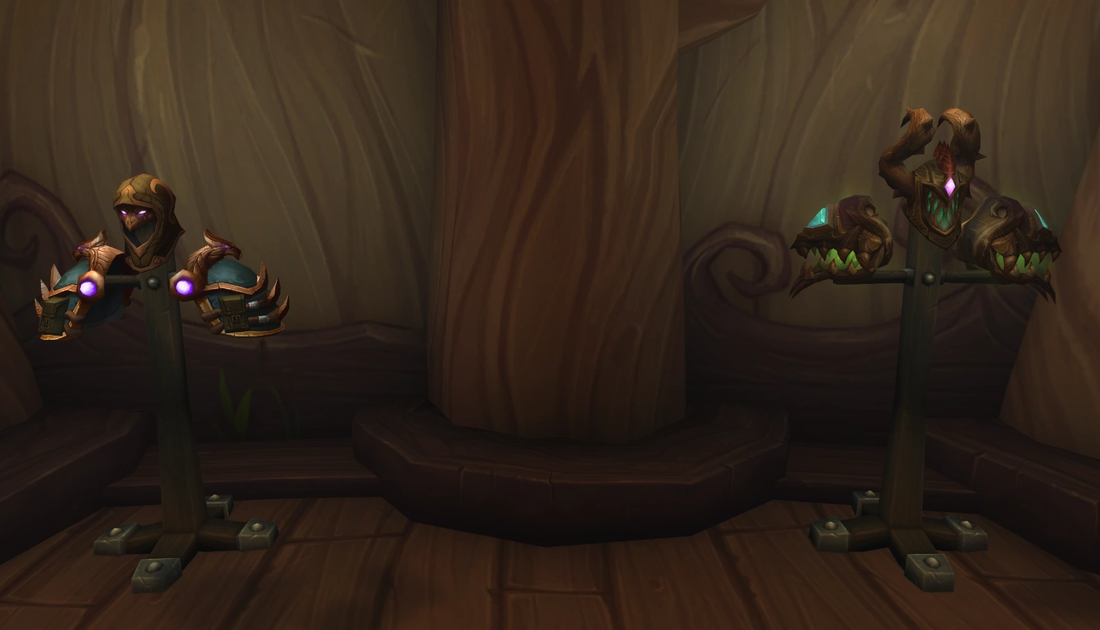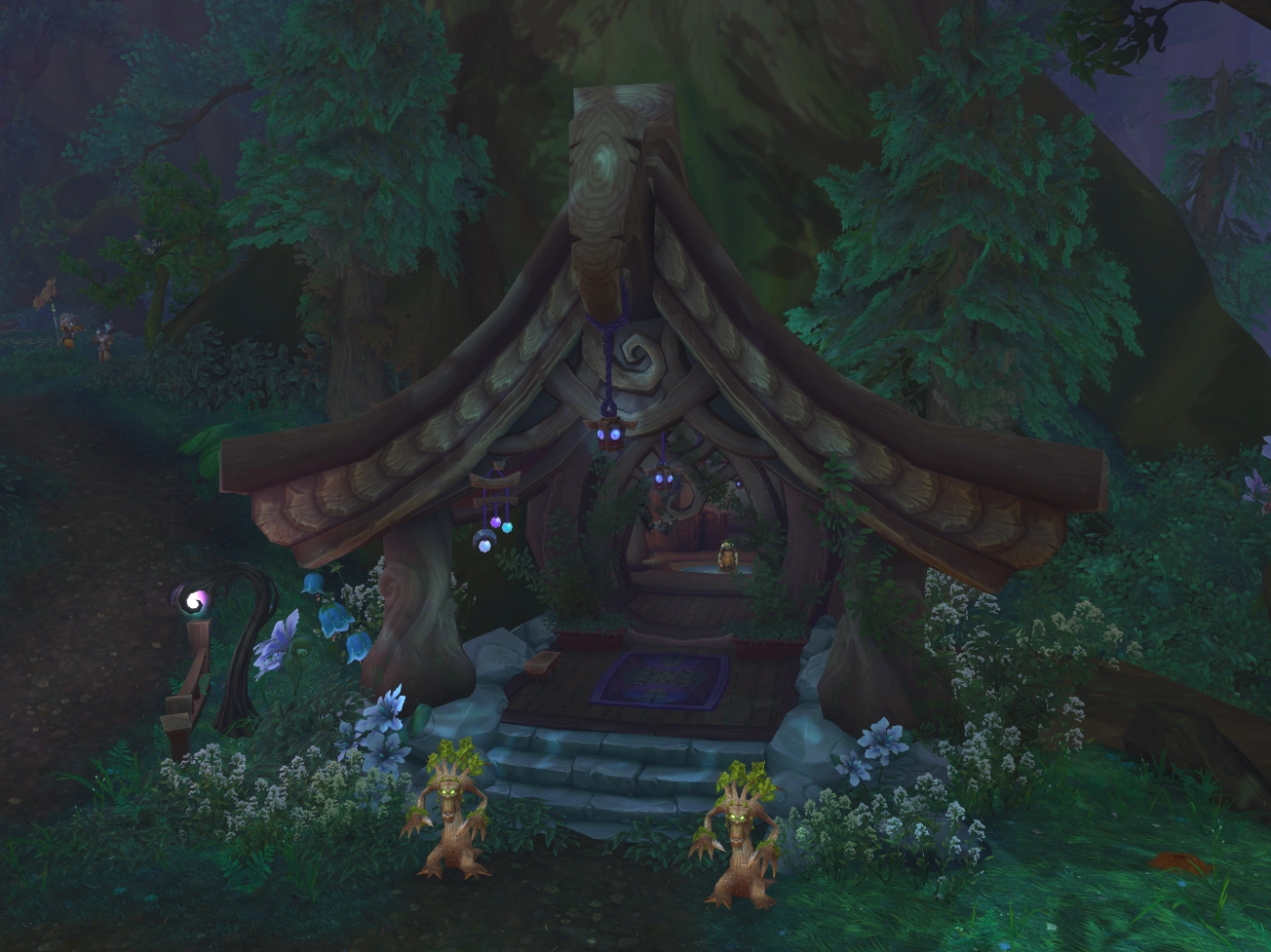 The Retreat is the home of the archdruid of the Dreamgrove. Zen'Kiki acts as a personal servant, keeping the place in order. Once the wardrobe collections for the first still-available tier sets have been completed, trophy displays are unlocked.