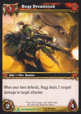 | Rules | When your hero defends, Rogg deals 2 ranged damage to target attacker. |