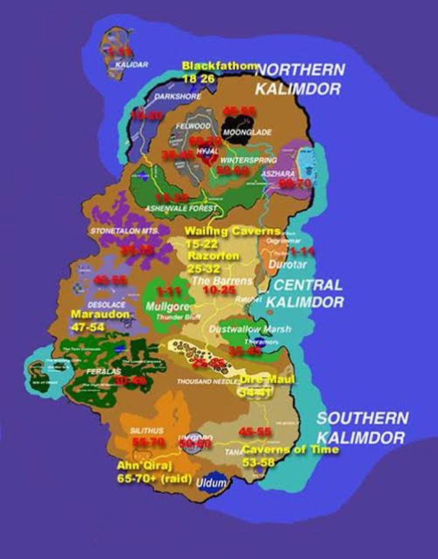 An early map of Kalimdor, showing Blackfathom in northern Darkshore
