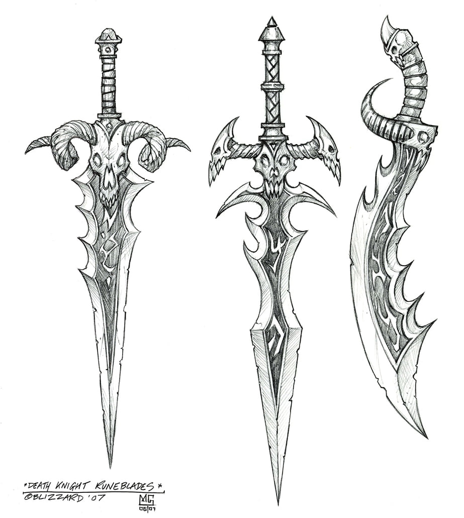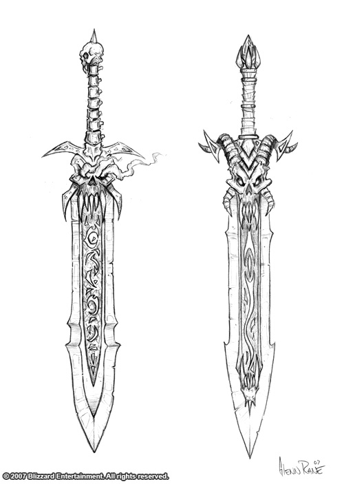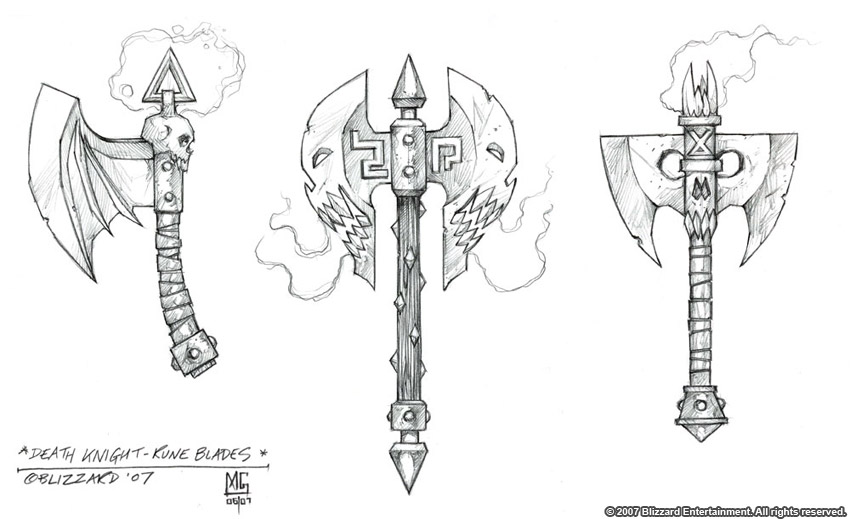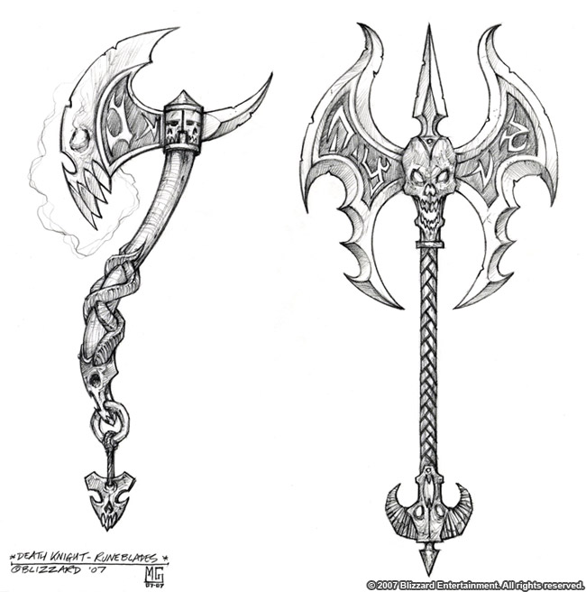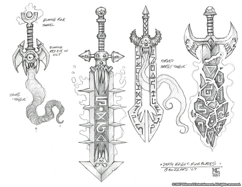 Death knight runeblades concept art by Glenn Rane.