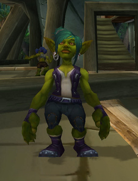 Sassy Hardwrench is a goblin quest giver at the KTC Headquarters in Bilgewater Port, then later on the Lost Isles. Sassy herself is an important quest giver throughout the Goblin starting zone experience, providing many quests throughout Kezan and the Lost Isles. As such, she plays an important role in the story throughout the zone in supporting her boss/former boss ((the player character)) as he/she works to rescue the Goblins from the Isles. She first appears as "Your Executive Assistant" whilst on Kezan, a title which changes to "Your Former Executive Assistant" whilst exploring the Lost Isles.