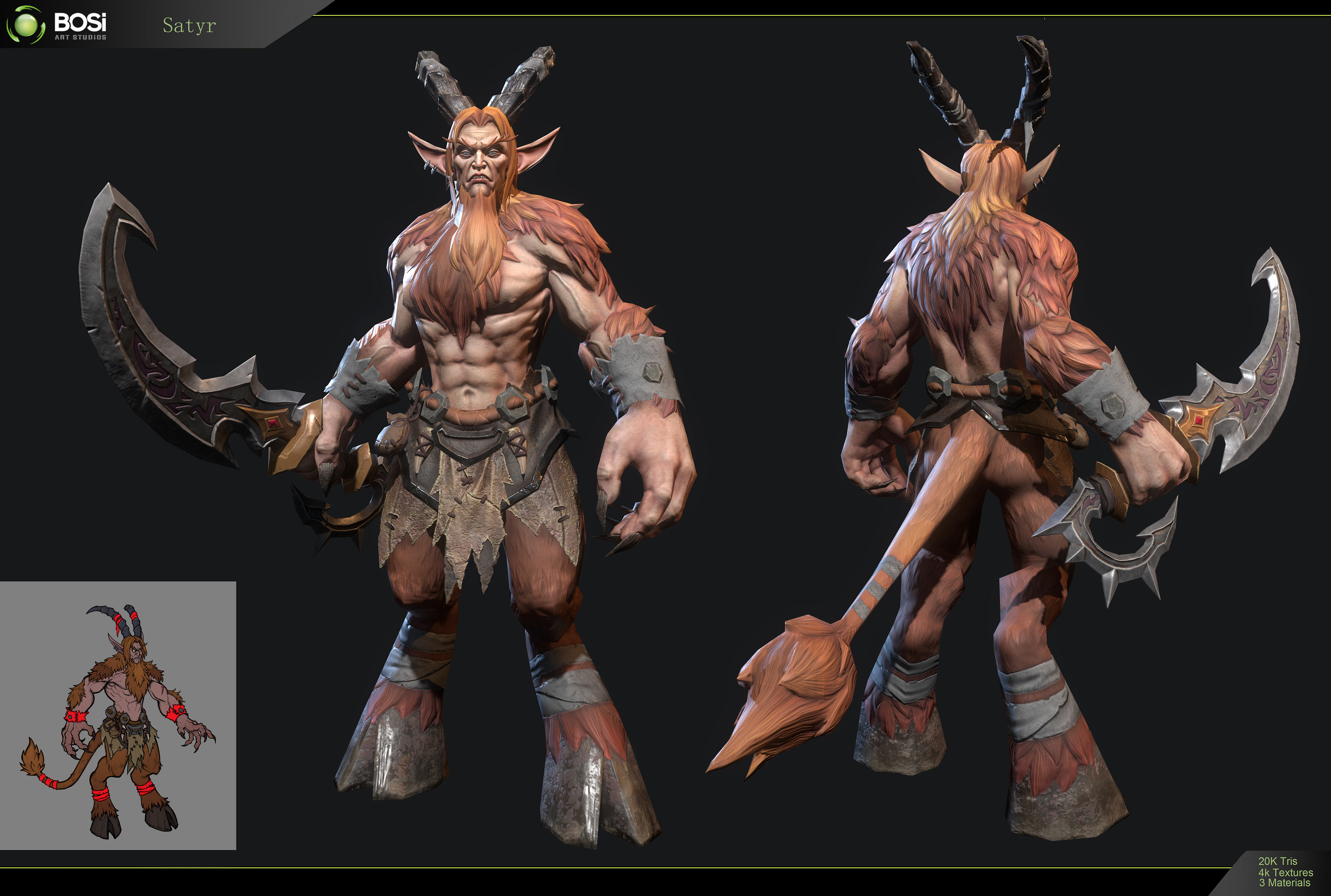 Concept art of a corrupted druid satyr by Glenn Rane.