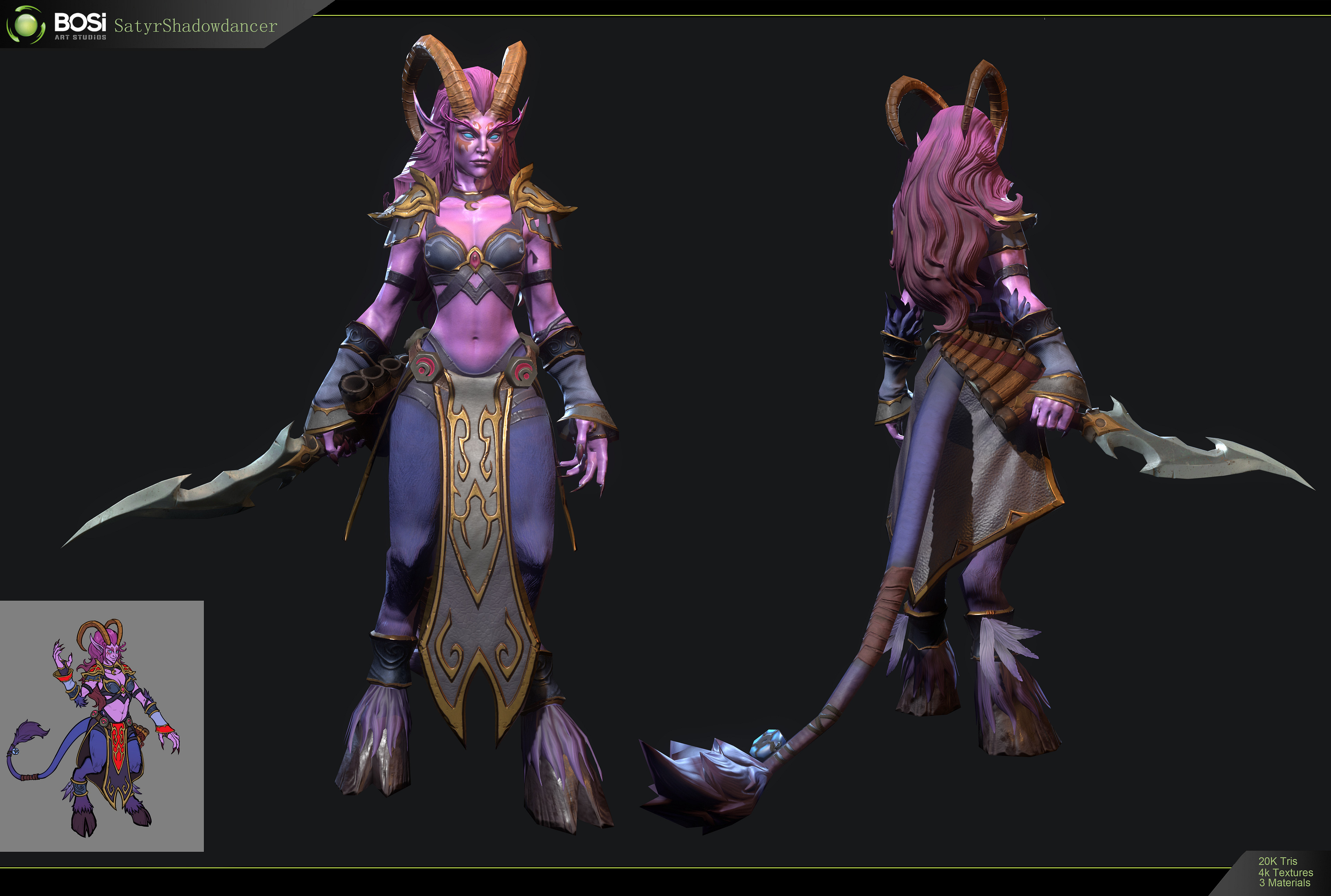 Concept art of a female satyr in The Art of World of Warcraft: Legion.