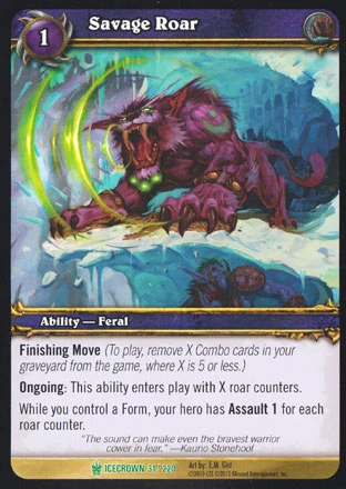 Finishing Move Ongoing: This ability enters play with X roar counters. While you control a Form, your hero has Assault 1 for each roar counter. |