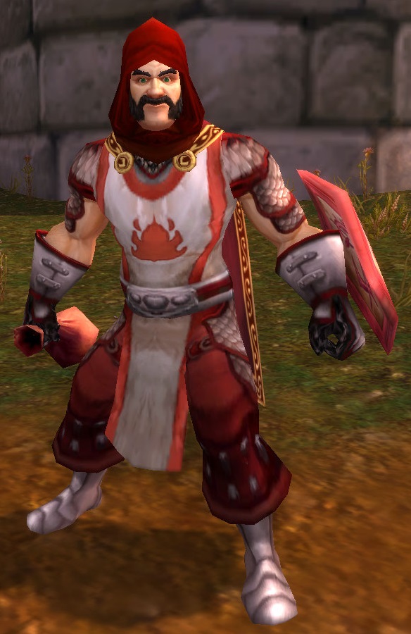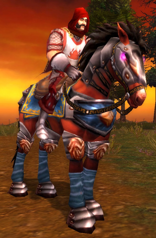 The Scarlet Courier is a somewhat simple-minded emissary of the Scarlet Crusade. He was sent with a message from High Commander Galvar Pureblood, leading an army of the Scarlet Crusade to fight off the death knights of Acherus, but was distracted by a fake tree set up by the death knights to cover an ambush. This plays out in