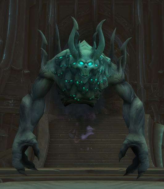 In the Maw, souls deemed suitable for service among the Mawsworn are broken down to their barest essence with the resulting creature forming black shades, devoid of all individual will.[4] Maw guards begin as inanimate suits of armor infused with a decrepit shade to complete their genesis.[5]
