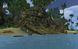 Shipwreck Shore is the appropriately named beach shore on which the goblins wash ashore on the Lost Isles after the Alliance ships attacked Gallywix's Yacht carrying the Kezanian evacuees and slaves. The forward section of the ship has been made into a shelter. Several problems have arisen from the foliage to the north.