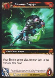 | Rules | When Skumm enters play, you may turn target resource face down. |