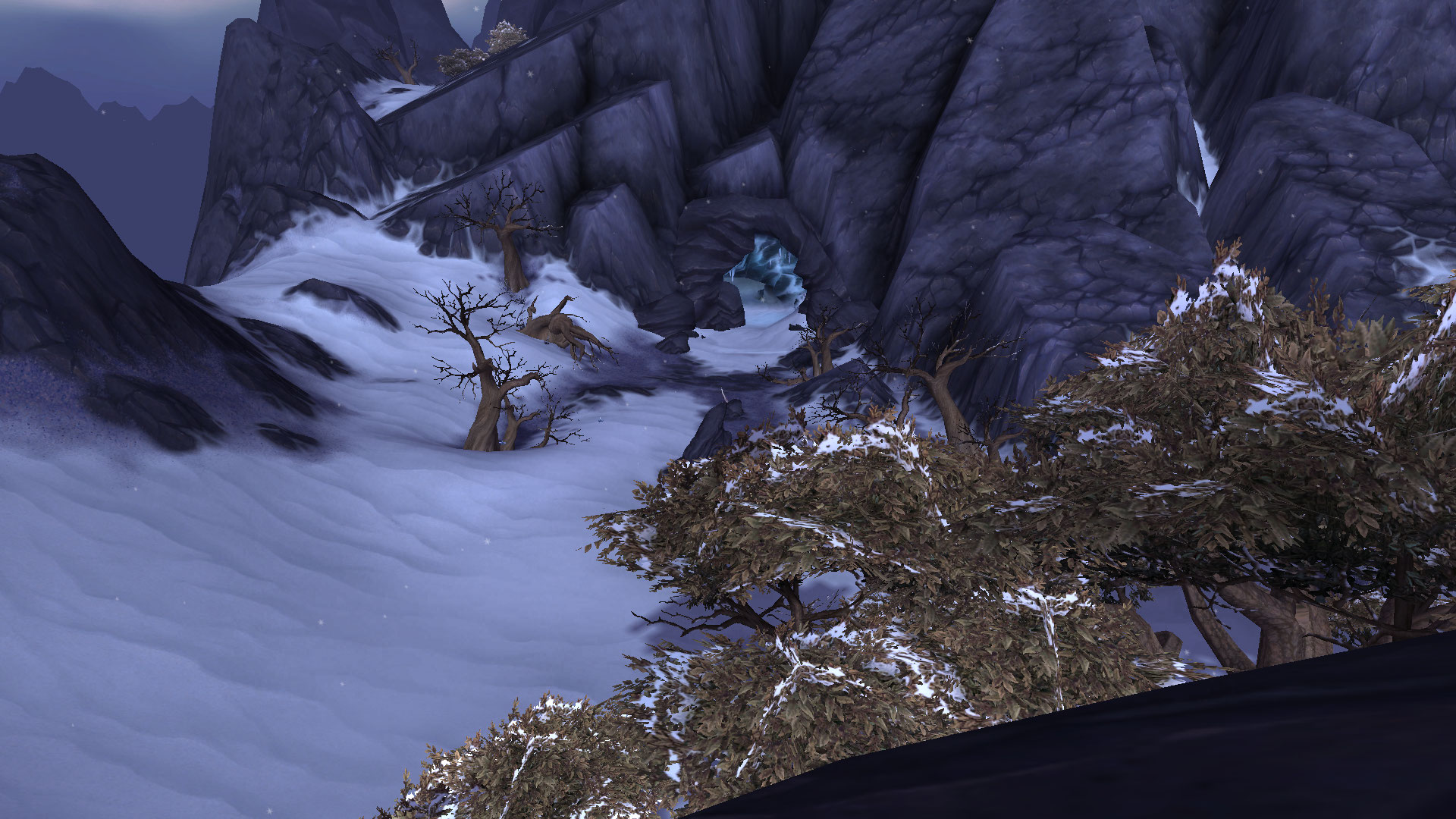 Snowfall Alcove[65, 16] is a small alcove just outside a large cave in northeastern Frostfire Ridge along the Coldsnap Bluffs. The cave is crawling with the Shiverblood pales.
