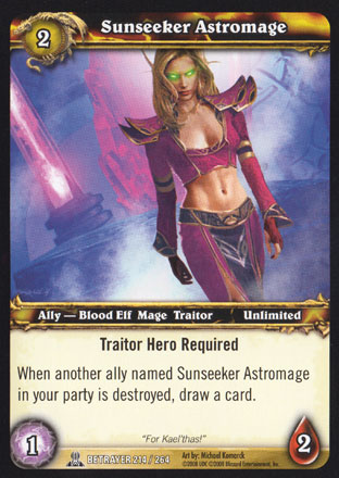 Traitor Hero Required When another ally named Sunseeker Astromage in your party is destroyed, draw a card. |