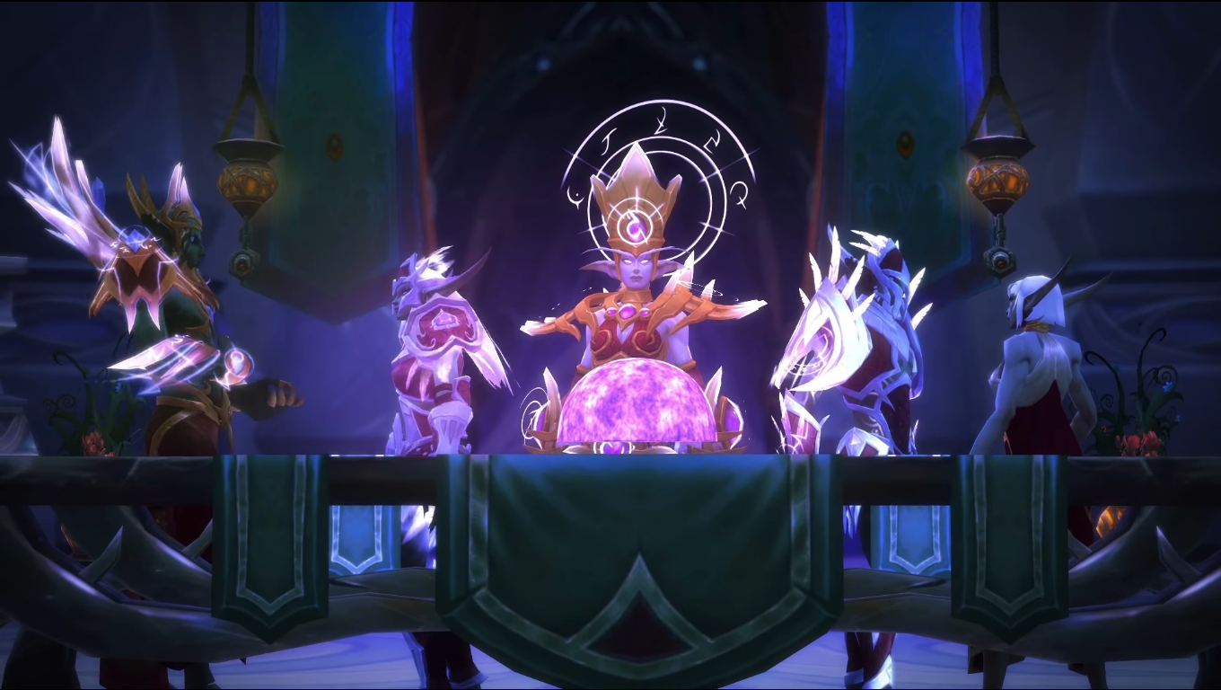 Suramar's ruling elite, with Grand Magistrix Elisande in the center.