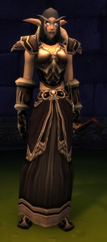 Lady Sylvanas Windrunner, formerly styled "the Dark Lady" and "the Banshee Queen", is the former Warchief of the Horde and former supreme ruler of the Forsaken, one of the most powerful factions of undead on Azeroth. In life, Sylvanas was the ranger-general of Silvermoon, whose leadership acumen and martial prowess were without equal. During the Third War, she bravely defended Quel'Thalas from a Scourge invasion led by the death knight Arthas Menethil. Ultimately, however, Sylvanas fell in battle. Rather than honor the ranger-general with a quick death, Arthas ripped out her soul and transformed it into a banshee: a cunning and vengeful agent of the Lich King empowered by hate.