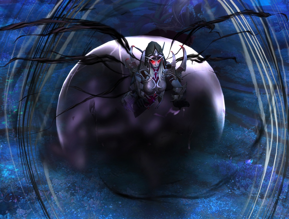Sylvanas, the Banshee Queen, and leader of the Forsaken traveled to Quel'Thalas for her own reasons, but soon encountered the traitor Dar'Khan, confronting him in the ruins of Silvermoon. She aided Kalecgos in attempting to stop the traitor from claiming the Sunwell's energies; though she was initially unsuccessful, she distracted Dar'Khan long enough for Anveena to regain her power and vaporize him. Sylvanas agreed to keep Anveena's identity a secret in the interests of preventing Arthas from gaining the Sunwell's power.