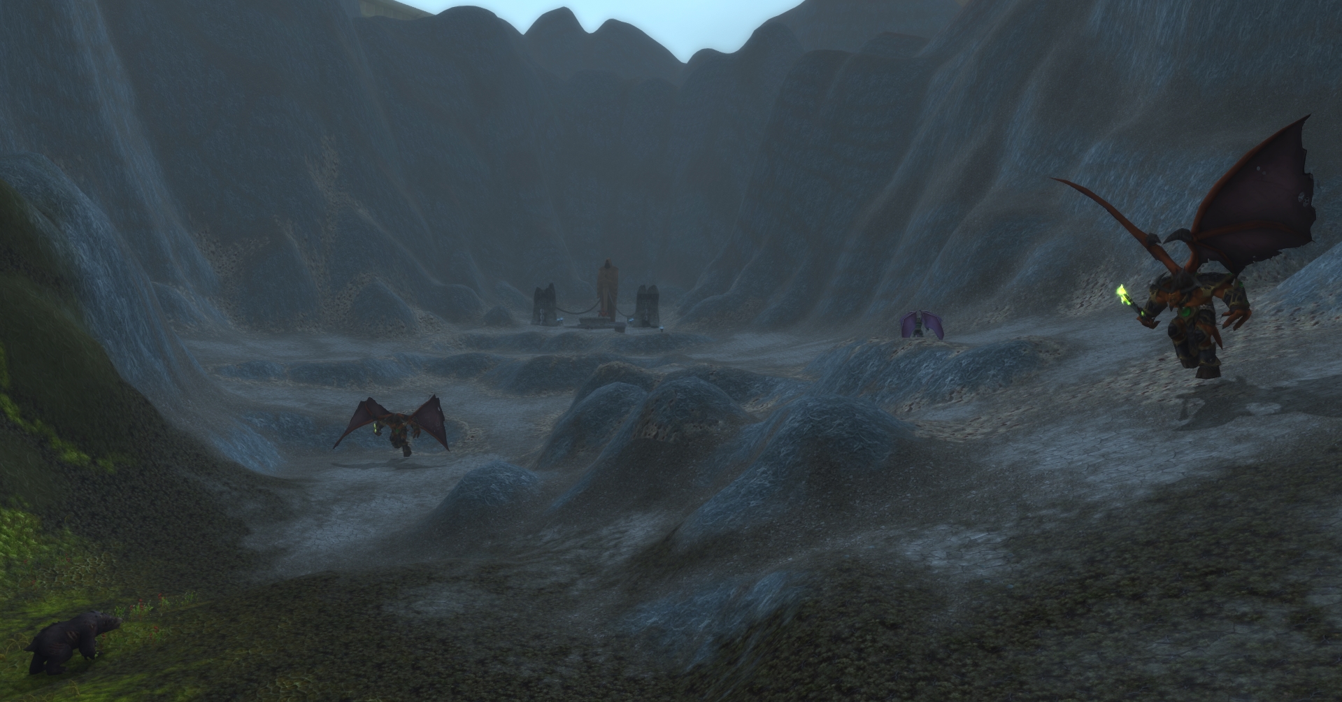 While most of the Scar has been taken over by the forest, a small part of the area still remains intact, mostly around the altar where Daio the Decrepit decided to stay. Occasionally the Man'ari eredar Narixxus the Doombringer will appear behind it.