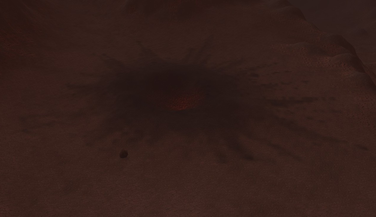 A smoldering crater in the heart of the Tainted Scar.