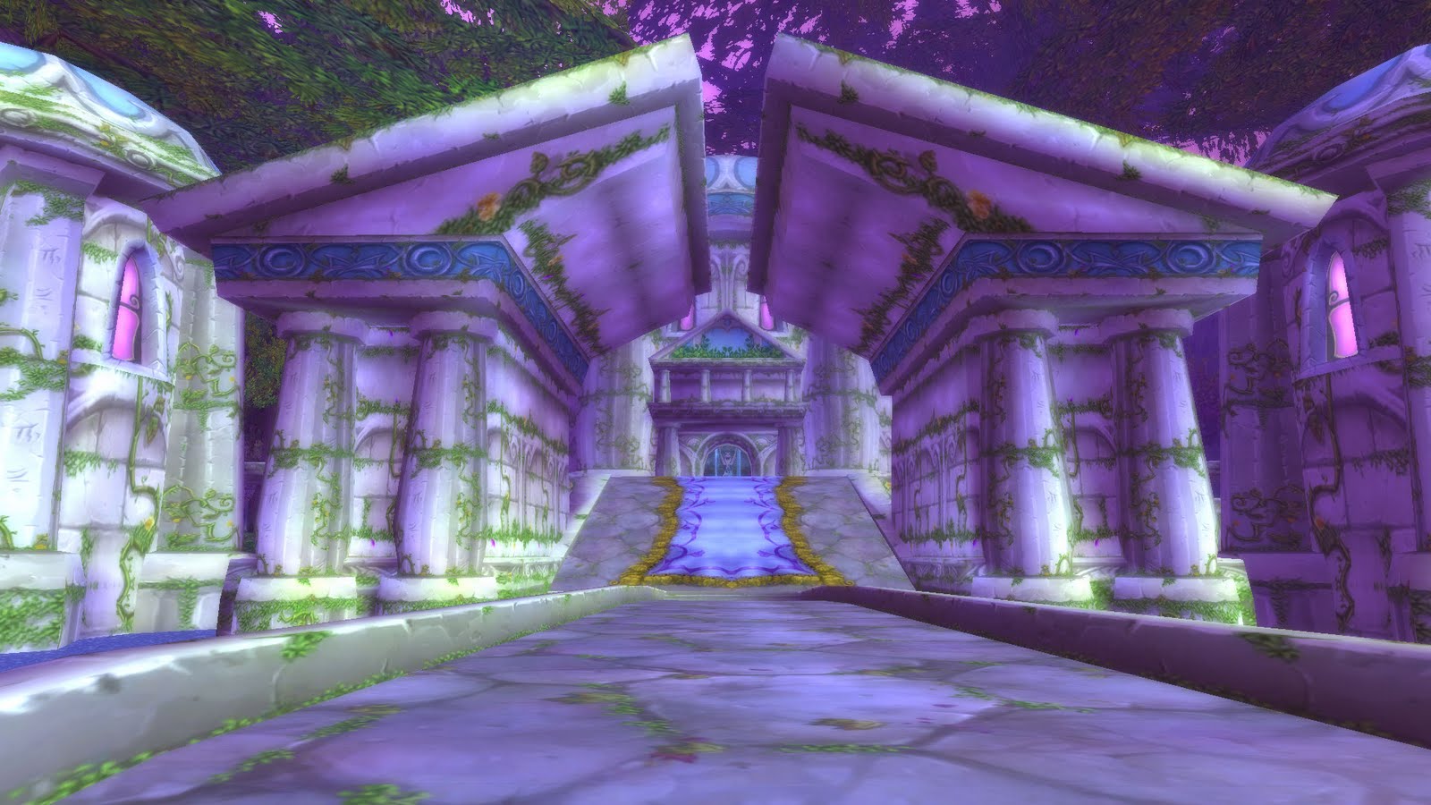 The Temple of the Moon (or the Temple of Elune)[1][2] in Darnassus was a major temple dedicated to the goddess Elune, the dwelling and moonlit sanctum[3] of the Sisters of Elune, and the center of all night elven spiritual life. The temple also served as the seat of government in Darnassus and Teldrassil,[4] with the night elven leaders High Priestess Tyrande Whisperwind and Archdruid Malfurion Stormrage residing here. Incidentally, it was one of the largest artificial structures in the region.