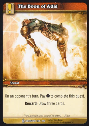 | Rules | On an opponents turn: Pay 7 to complete this quest. Reward: Draw three cards. |