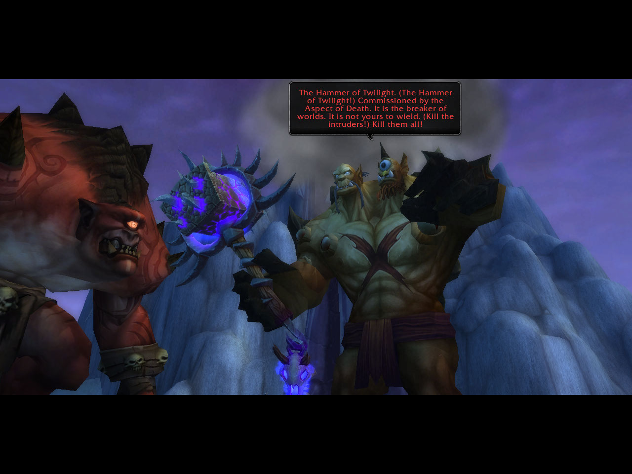 The Hammer of Twilight is the weapon of Cho'gall, and a fixed device located at the Altar of Twilight[45.3, 87.9] of the Twilight Highlands.