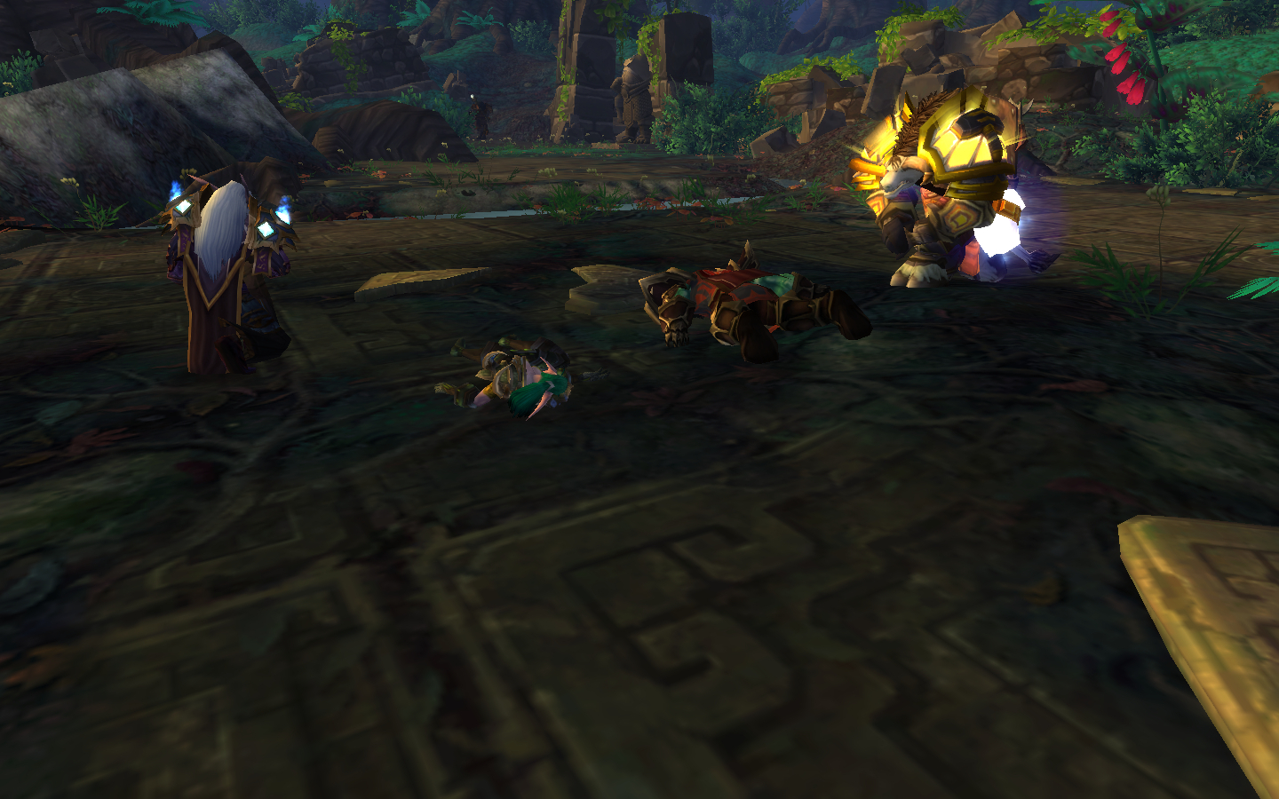 The fight begins. The Sunwalker Dezco and Lorekeeper Vaeldrin will come out swinging at each other, and not the mogu, so ignore them and keep attention on Brojai. Every now and then Brojai will stop what he's doing and channel Revive Guardian on one of the statues to activate it.