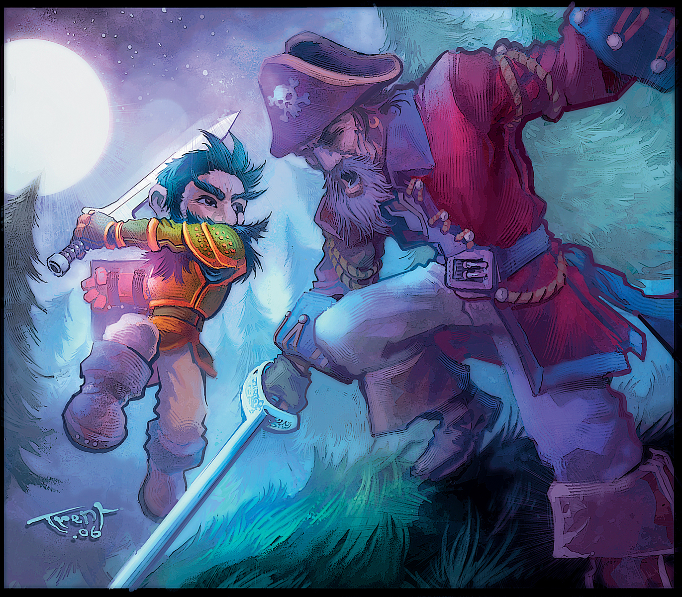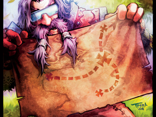 Trent Kaniuga is an artist who worked at Blizzard Entertainment from 2006 to 2019. He was a Concept Designer on The Burning Crusade and Wrath of the Lich King, as well as an artist for the TCG and Hearthstone. Kaniuga left Blizzard because he prefers working with smaller teams where he can connect with the players and the development team, a connection which he felt he lost when Blizzard quickly grew into a larger company. He currently runs the independent art house Aquatic Moon, which does contract work for Blizzard, Riot, and other companies.[1][2][3][4] He and his team notably did the artwork for Traveler's second volume.[5]