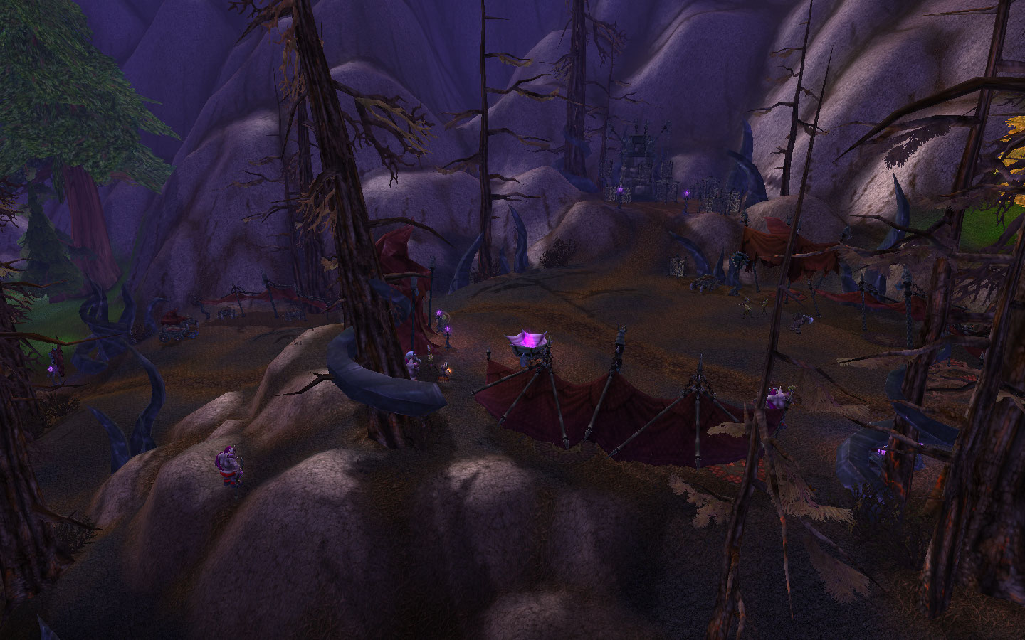 The Twilight Command Post[43, 21] is a large Twilight's Hammer outpost found in the northern part of Verdant Thicket atop Mount Hyjal. The cultists have been changing the land to suit their needs and style.
