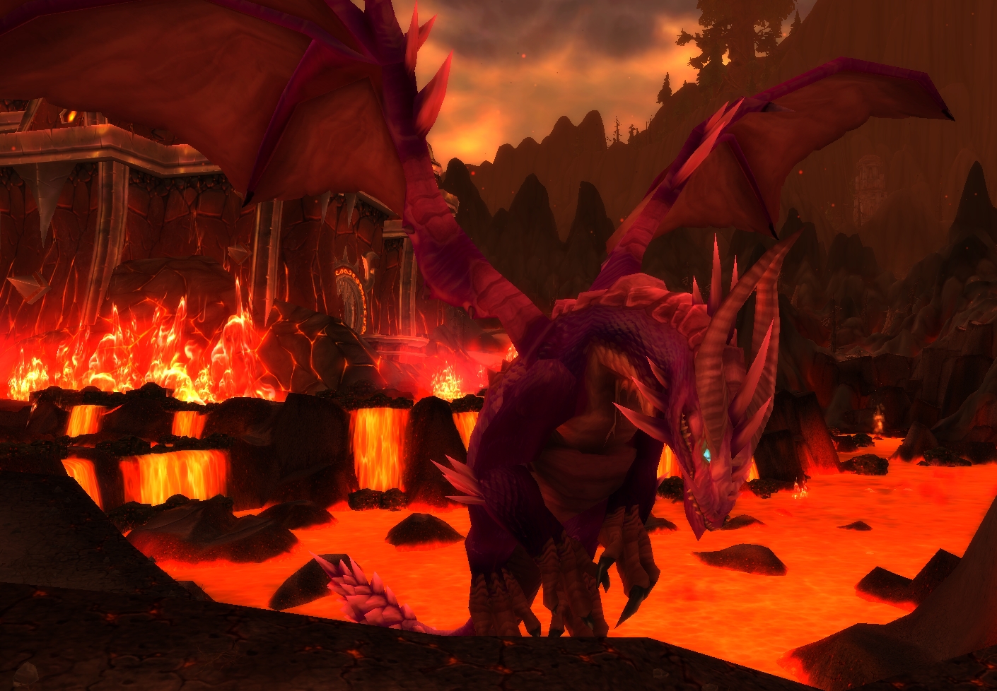 The story of the twilight dragonflight is expanded in World of Warcraft: Cataclysm, in the region known as the Twilight Highlands, east of Grim Batol. They appear as an elite guard within Twilight's Hammer clan's ranks and their drakes are used as mounts by their mortal followers.