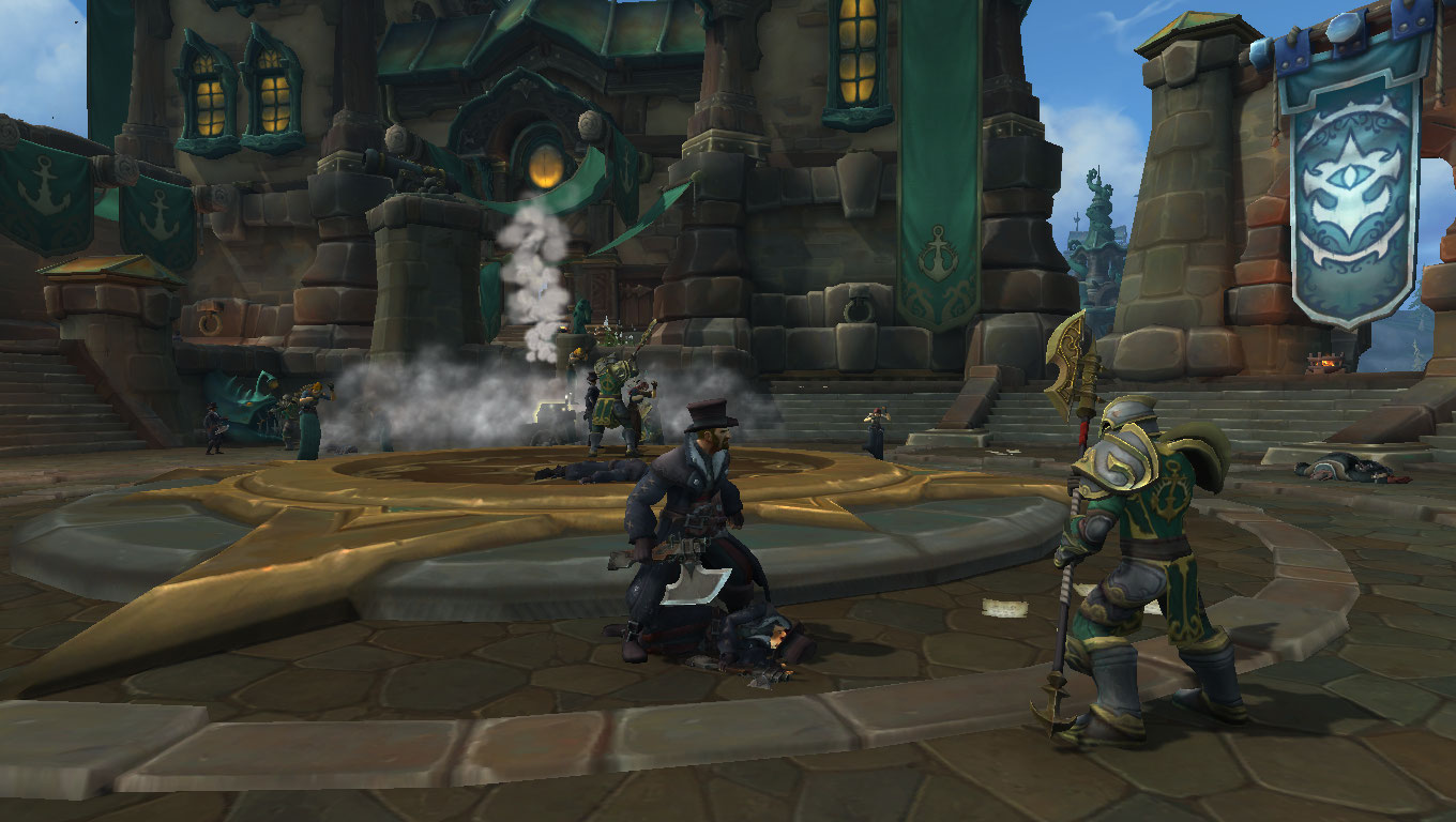Later in the conflict, Boralus would be attacked directly by Ashvane and pirate forces, who breached the city walls. The outer square saw a battle between Hadal Darkfathom and Proudmoore loyalists, with the sea giant ultimately being killed. The southern plateau of Unity Square was heavily damaged in the fighting, with much of it collapsing into the nearby waters. Alliance forces would push through this damage to reach and slay the beast known as Viq'Goth.