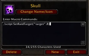 In Cataclysm, AoE with a target marked skull is a common tactic in mob fights. By both tank and dps focusing on the skull, dps are less likely to get the aggro. In this way the group needs to frequently marking skulls. This macro can help you mark skulls easily. When you press it, it automatically marks your current target as skull: