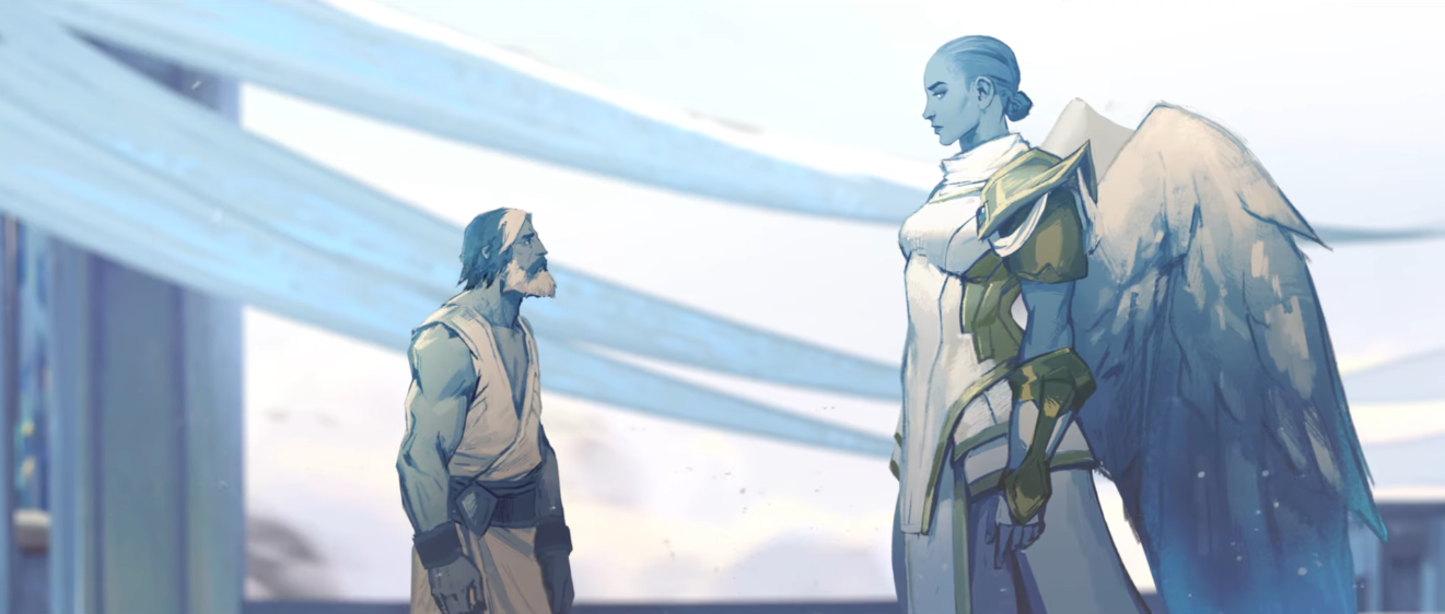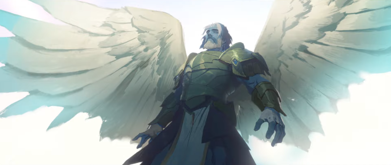 The Paragon Devos personally welcomed Uther's soul upon his arrival in Bastion, informing him that his selflessness in life had earned him the opportunity to shed his mortal burdens and train to become a kyrian Ascended ferrying souls to the Shadowlands. Uther struggled to accept his new purpose, as he felt that his work was not done and that he still had to bring Arthas to justice.[40] As time passed, Devos continued watching over Uther's soul, concerned that his soul seemed broken and that this was why he was failing to let go of his memories and ascend.