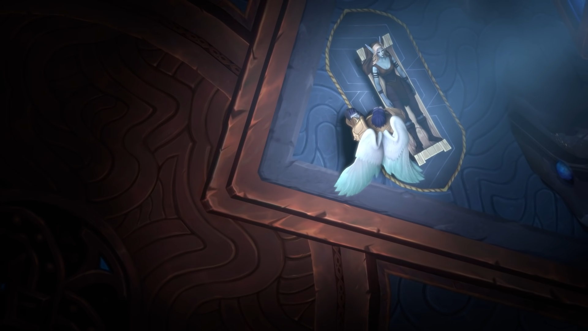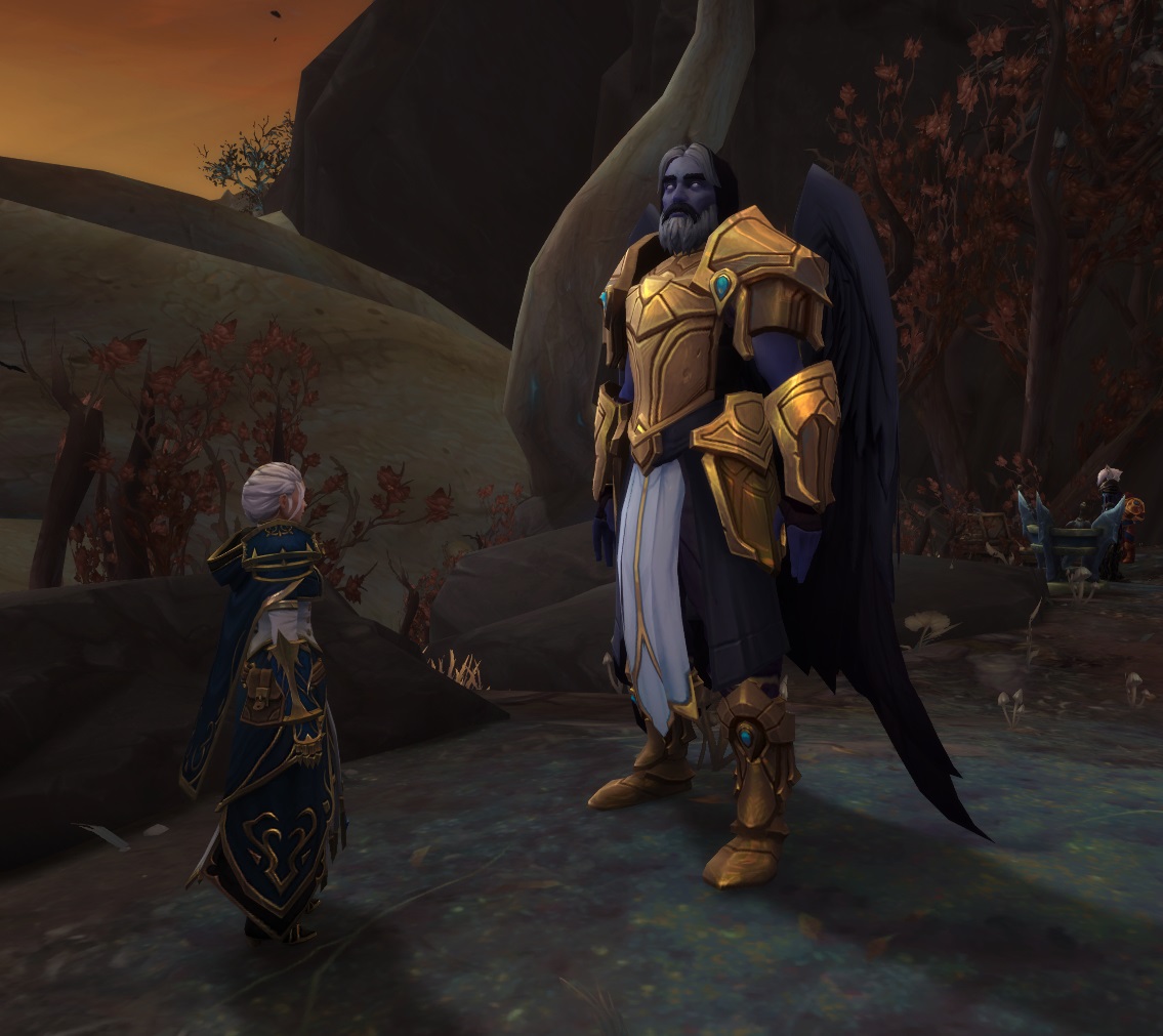 After the kyrian and their mortal allies rebuilt the crest and caught up to Lysonia in the Maw, Uther was horrified to discover that Lysonia was in fact under the thrall of Helya, who in turn was pledged to the Jailer. Lysonia was urged by Helya to take Uther's power to transform herself in order to topple the Archon, Kyrestia the Firstborne. The adventurers were able to stop Lysonia's ritual, and allowed Uther to escape.[54] After he admitted that he had turned a blind eye to Devos' allies, and was blindly loyal to Lysonia, he asked to not be left in the Maw, and thus accompanied everyone back to Oribos.[55]