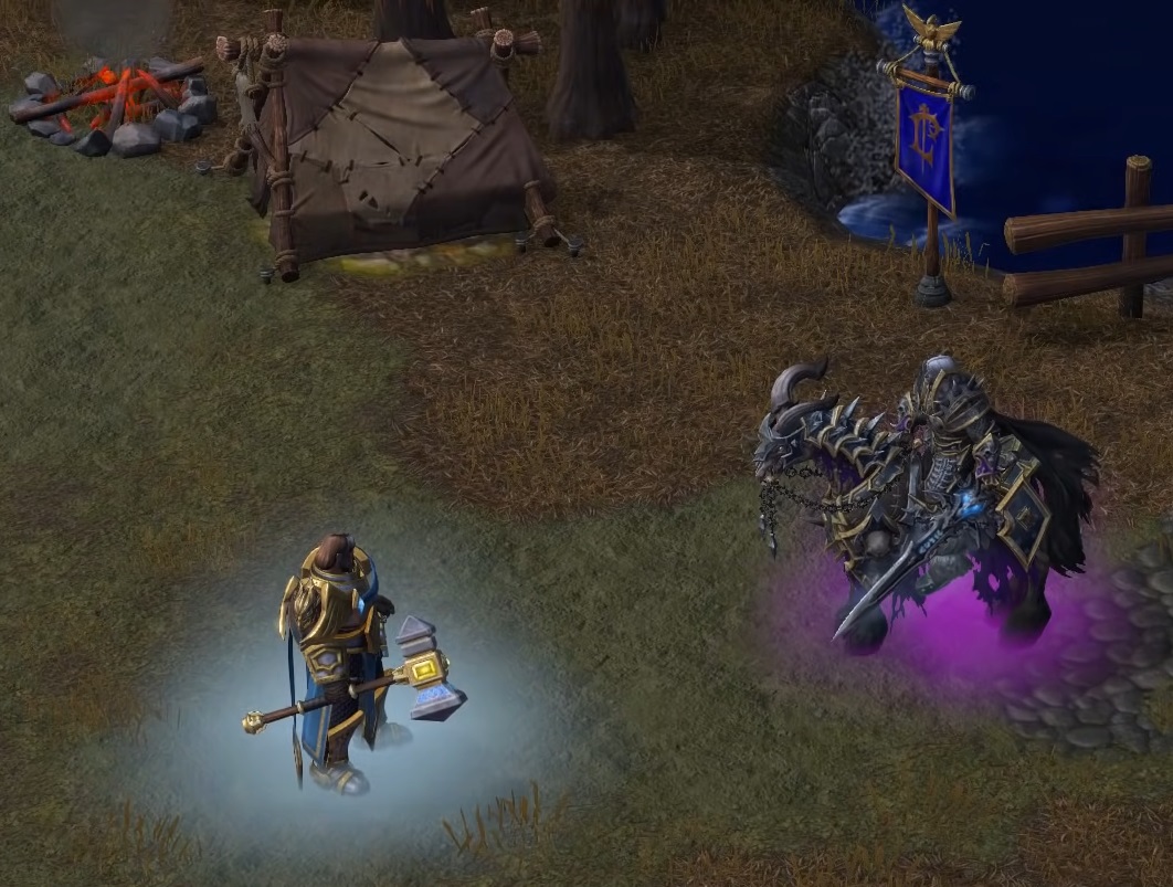 As the troubles of the Third War first began, King Terenas feared that Thrall would soon manage to gather all the remaining renegade orcs hidden in the lands of Lordaeron, which would be critical for the kingdom, he ordered Uther with the Knights of the Silver Hand and his son to ride towards southern Lordaeron,[28] in order to contain the orcish threat and deal with them once and for all. The old paladin was honored that Arthas joined him in defending the town of Strahnbrad from raiding orc renegades of the Blackrock Clan.[29] While Uther defended the town, Arthas engaged the encamped orcs. With Uther's help, Arthas managed to destroy the encampment, and kill the blademaster.[30]