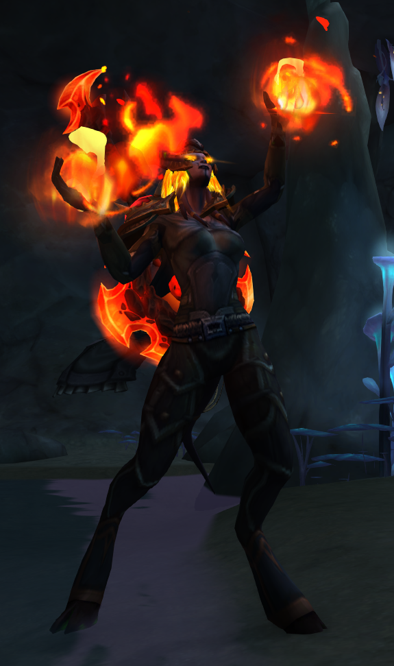 Furious Flames — Launches a fireball at the target's location every 1 sec for 6 sec and inflicts 20 Fire damage to all players within 3 yards of impact.