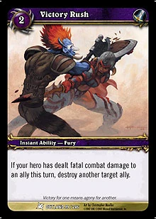| Rules | If your hero has dealt fatal combat damage to an ally this turn, destroy another target ally. |