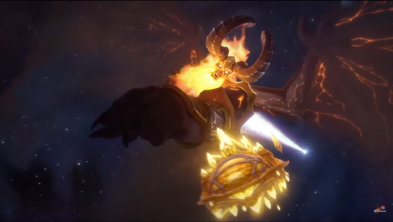 From the vessel the mortals watched as the dark titan, before being dragged to his prison, buried his sword into Azeroth's surface, with the Vindicaar only narrowly avoiding his desperate grasp on its flight. Afterwards, with the threat of the Burning Legion finally defeated, the mortals gathered on board to make closing remarks on the conflict.