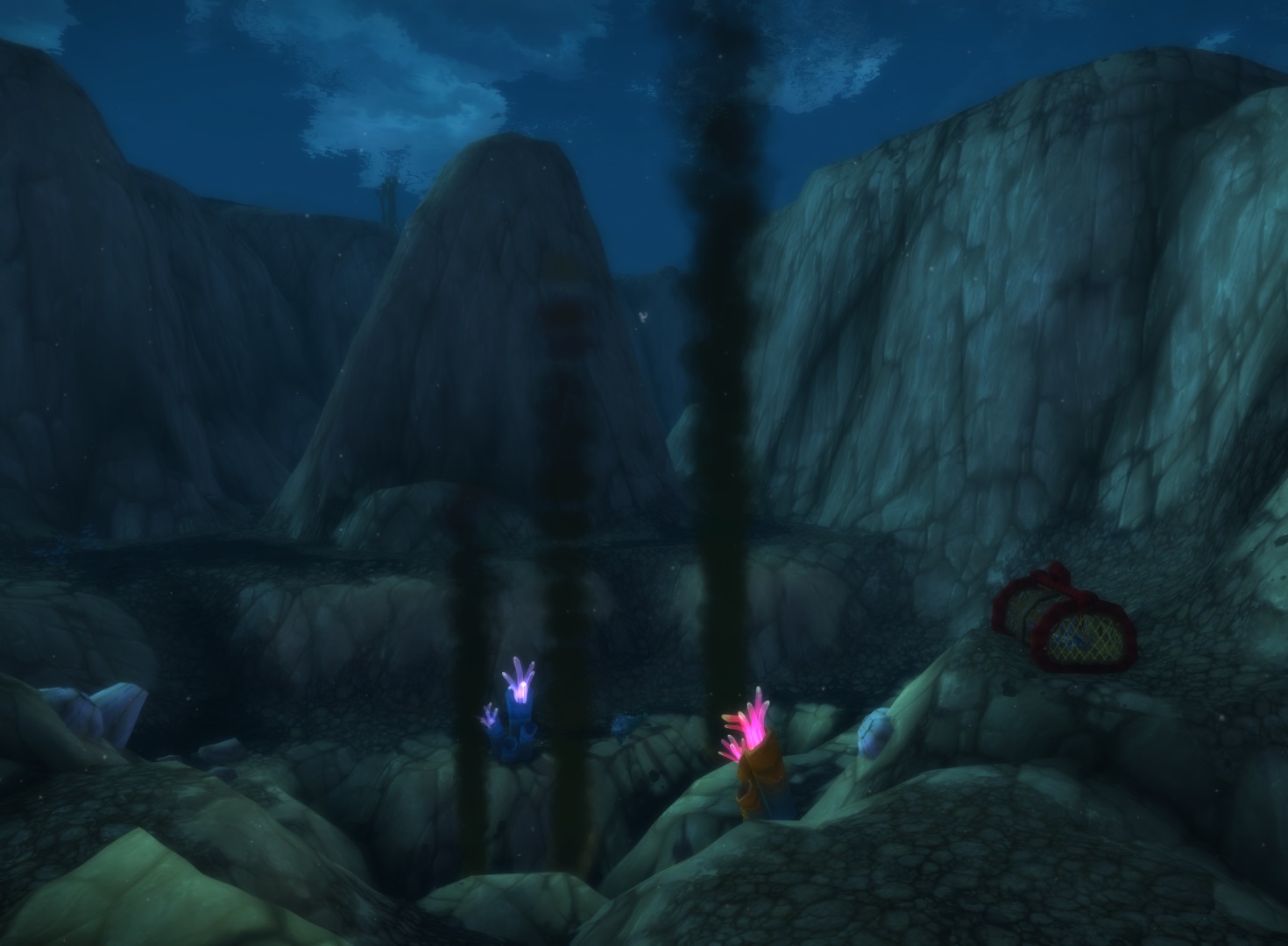 Crab pots are all over the seafloor, and merely interacting with them is enough to get them up to the surface. Kill Longfin Threshers, loot their Thresher Jaws, and extract
