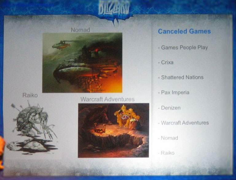 Warcraft Adventures in the list of Blizzard's canceled games at D.I.C.E. Summit at 2008.