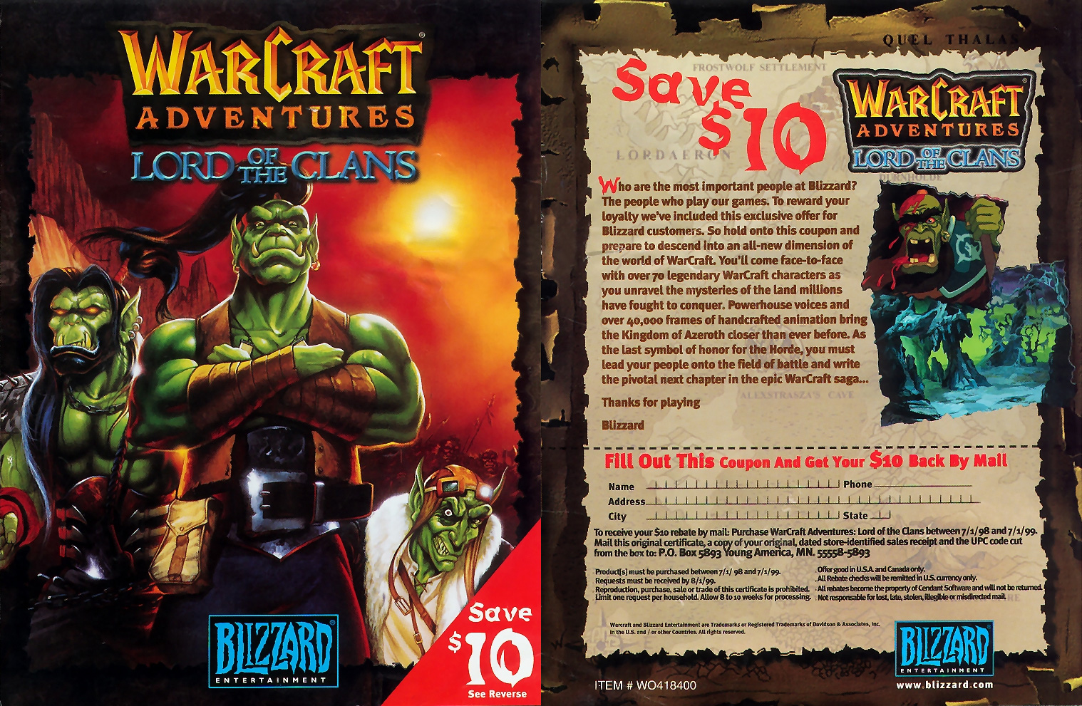 Warcraft Adventures flyer from old StarCraft Collector's Edition box