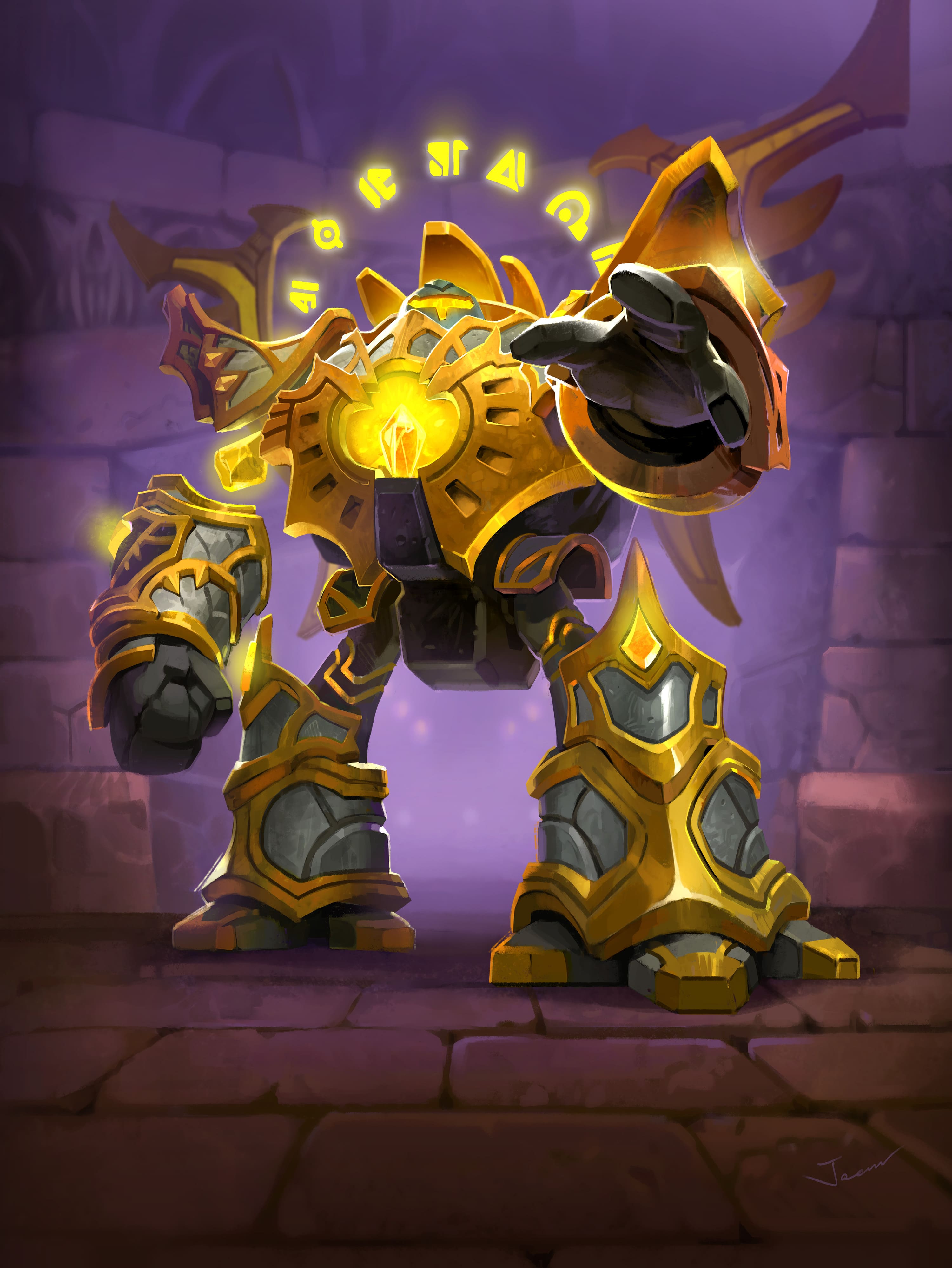 Warframes[1] (sometimes called battlesuits)[2] are mechanized armor suits[3] used by the Army of the Light. The Lightforged conduct quick, brutal hit-and-run attacks on the Burning Legion using these agile war machines.[4] They are truly fearsome instruments of war, capable of dealing and withstanding much damage. They are even capable of flight, although the Lightforged try to keep a low profile to avoid attracting the attention of the Legion.[5]