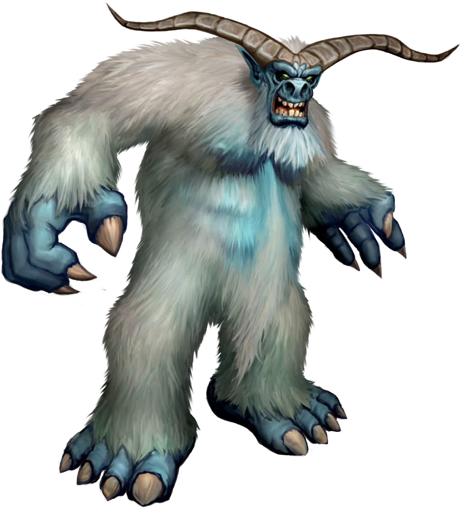 Wendigo are bestial, cave-dwelling humanoids. Barely intelligent, these creatures prefer to remain hidden when travelers pass close to their territory. A wendigo’s behavior turns aggressive, however, if a visitor overstays his welcome or threatens the yeti’s family. It is possible for a small tribe of wendigo to go unnoticed by a nearby community for years. The townsfolk may tell tales of beast-men living in the woods, but few residents, if any, see one directly. Wendigo living in close proximity are not necessarily a threat, and rumors say that some adopt and protect small villages, eliminating dangers from the shadows.[9]