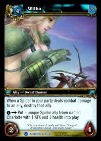 When a Spider in your party deals combat damage to an ally, destroy that ally. (3) → Put a unique Spider ally token named Charlotte with 1 ATK and 1 health into play. |