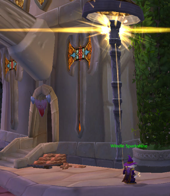 Every day at 9:00 PM server, Windle walks around and lights the street lights of Dalaran with his wand. He enjoys his job so much that he sells