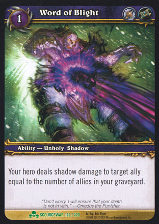 | Rules | Your hero deals shadow damage to target ally equal to the number of allies in your graveyard. |