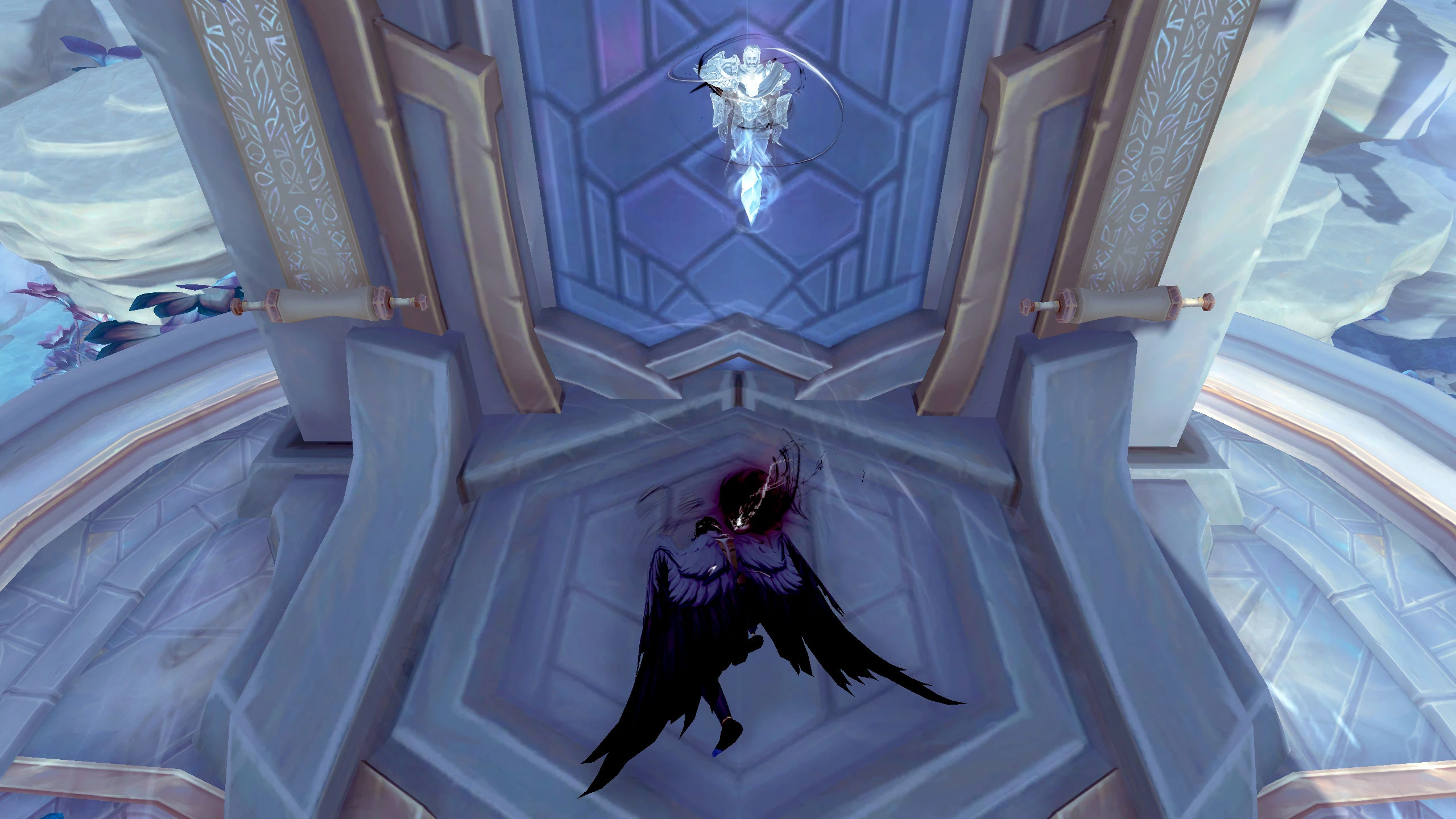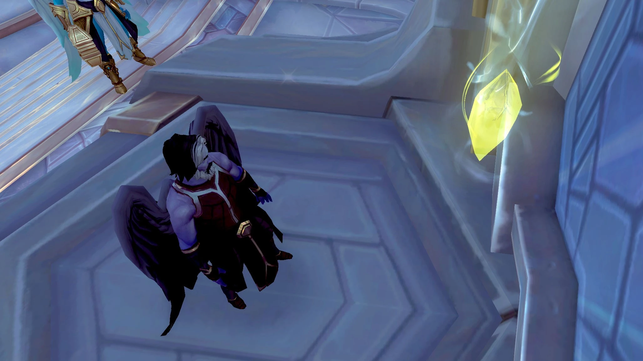 On the other side of the cutscene, Uther has fallen to his knees yet again and bursts of energy are periodically shooting into him. He has new gossip text reflecting this:
